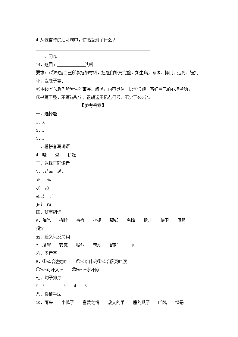 【文档预览】 无忧考网整理发布2020年四川资阳小升初语文真题及答案(Word版),前五页预览如下: