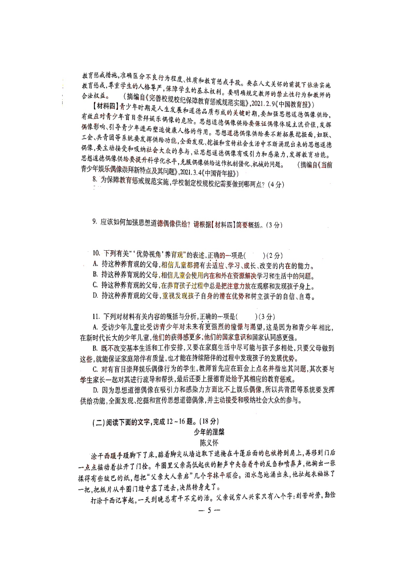 【文档预览】 无忧考网整理发布2021陕西商洛中考语文真题及答案(图片版),前五页预览如下: