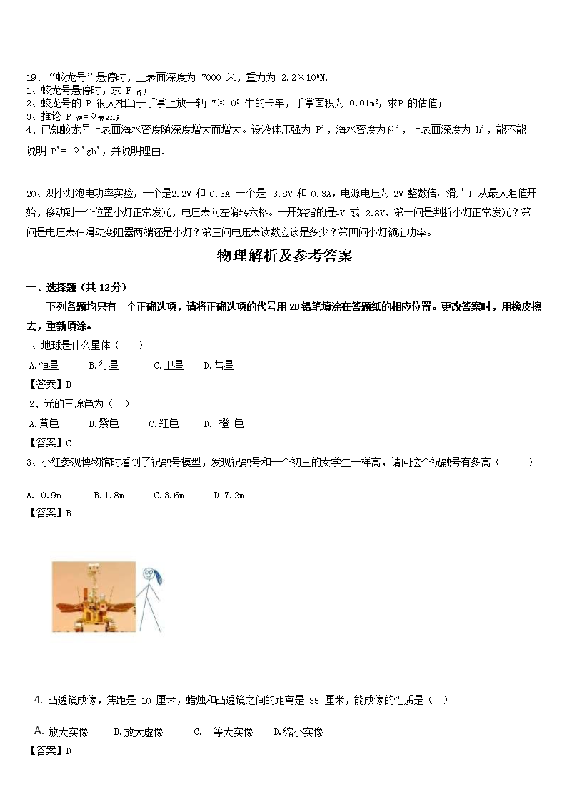 【文档名称】 2021年上海闵行中考物理试题及答案(Word版).doc