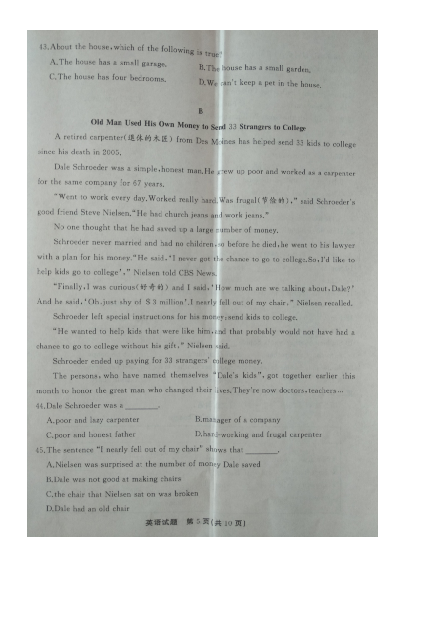 【文档预览】 无忧考网整理发布2021年湖北省随州市中考英语试题(图片版),前五页预览如下: