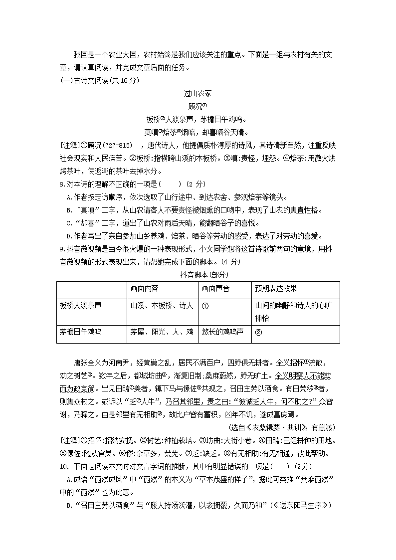 【文档预览】 无忧考网整理发布2021年湖南长沙中考语文真题(Word版),前五页预览如下: