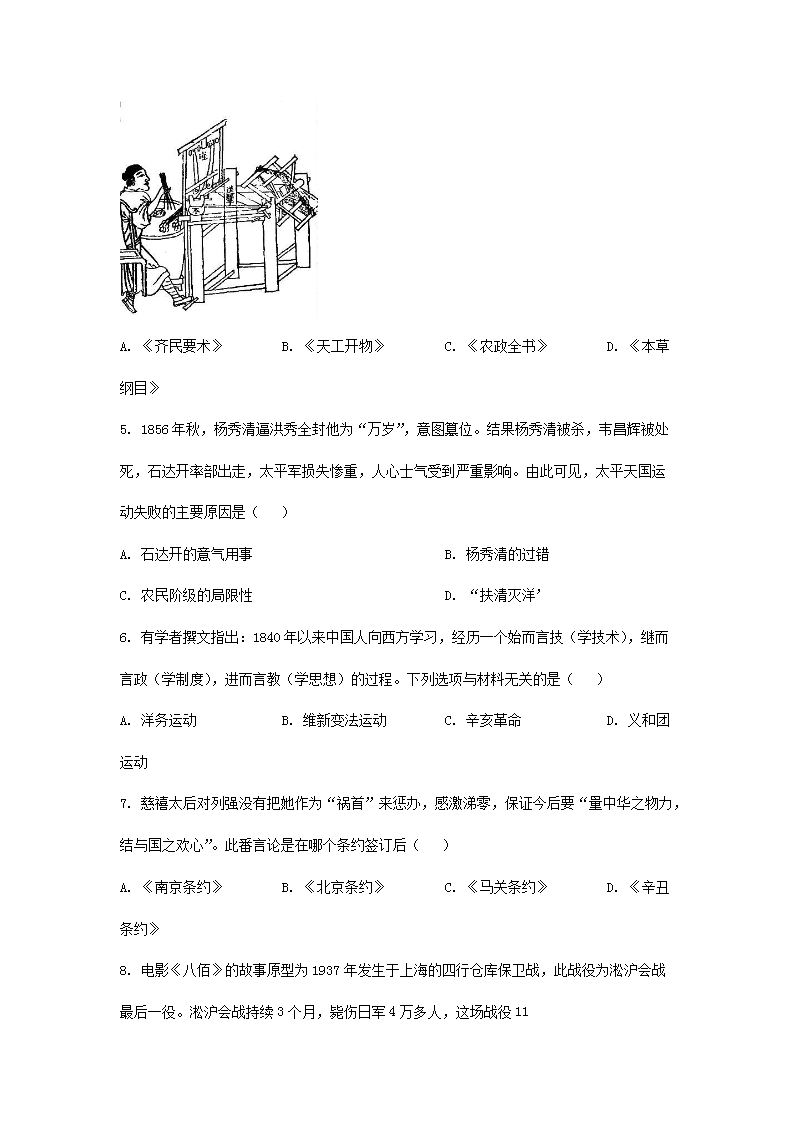 【文档名称】 2021年湖南怀化中考历史试题及答案(Word版).doc
