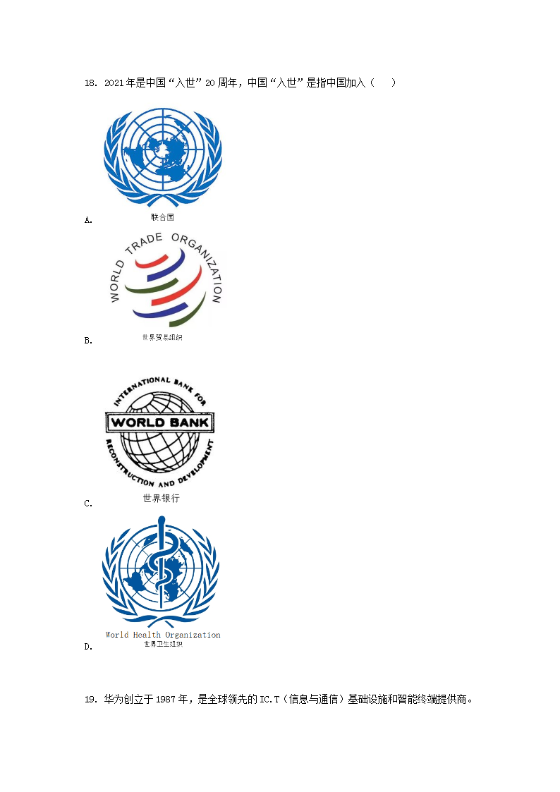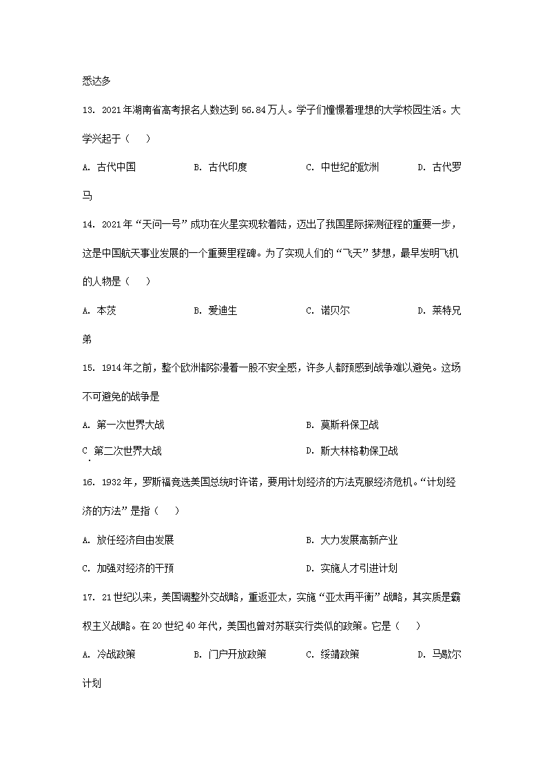 【文档预览】 无忧考网整理发布2021年湖南怀化中考历史试题及答案(Word版),前五页预览如下: