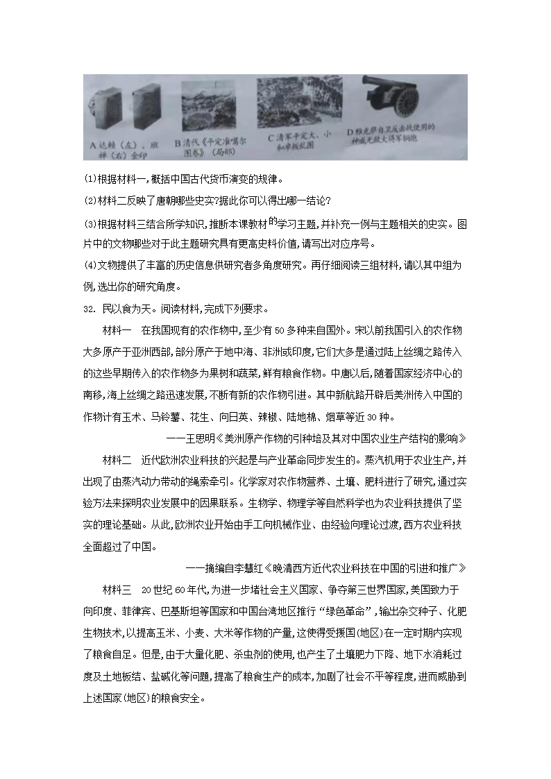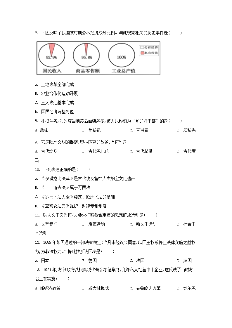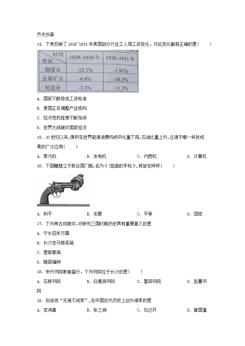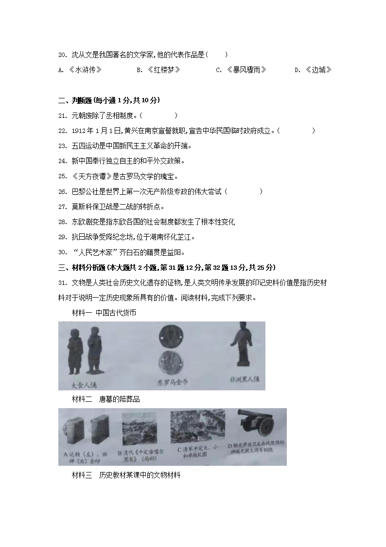【文档名称】 2021年湖南湘潭中考历史试题及答案(Word版).doc