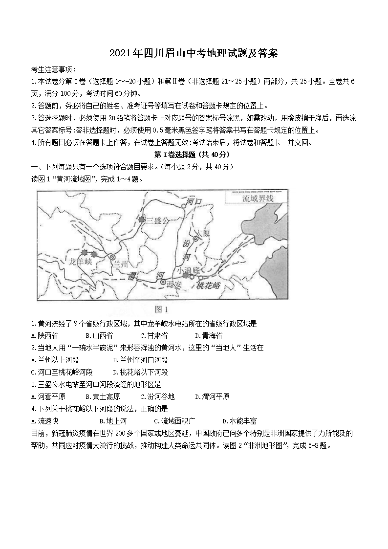 【文档预览】 无忧考网整理发布2021年四川眉山中考地理试题及答案(Word版),前五页预览如下: