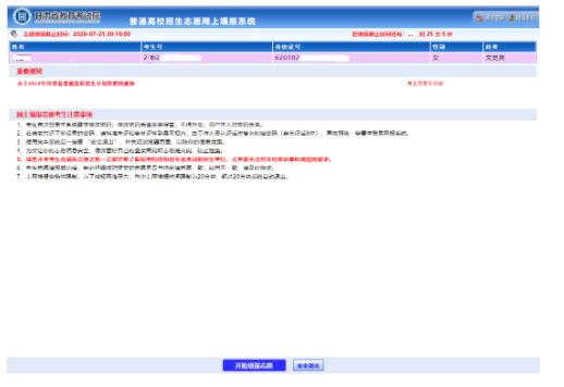 阅读完注意事项后,考生点击“开始填报志愿”按钮进入志愿填报首页。
