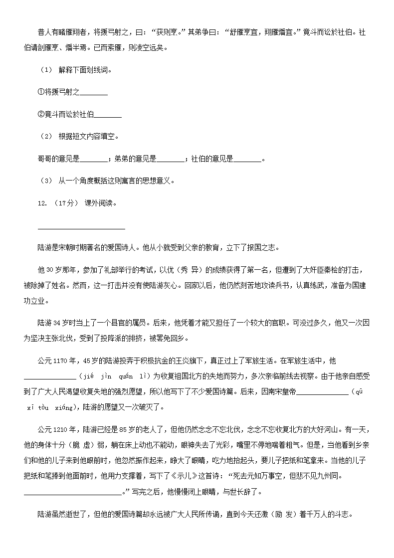 【文档名称】 2020年四川阿坝小升初语文真题及答案B卷(Word版).doc
