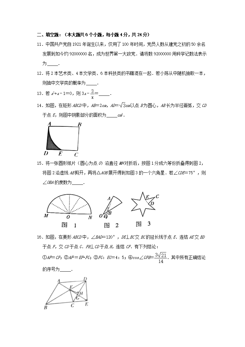 【文档名称】 2021年四川资阳中考数学真题(Word版).doc