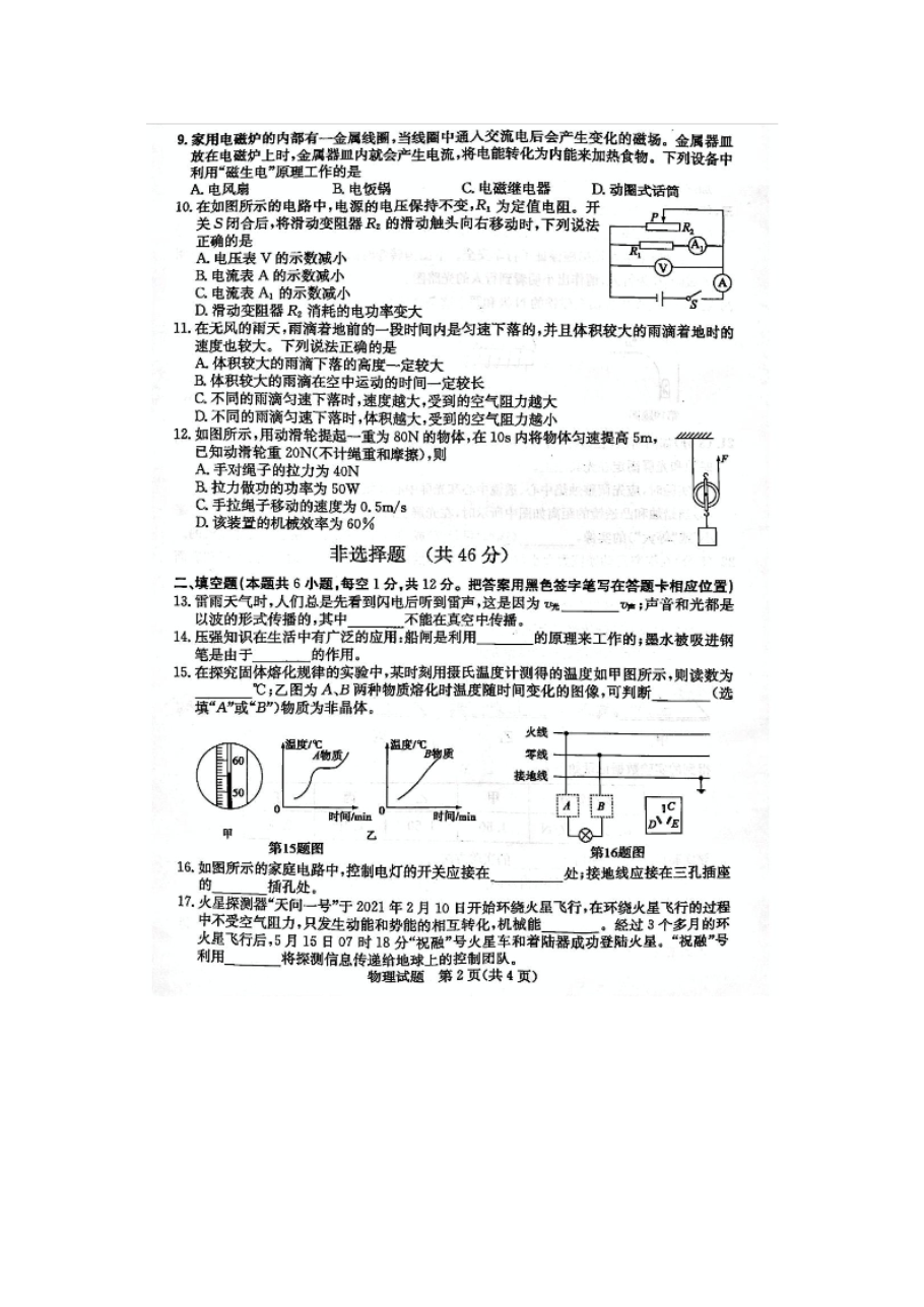 【文档名称】 2021年山东省菏泽市中考物理真题(图片版).doc