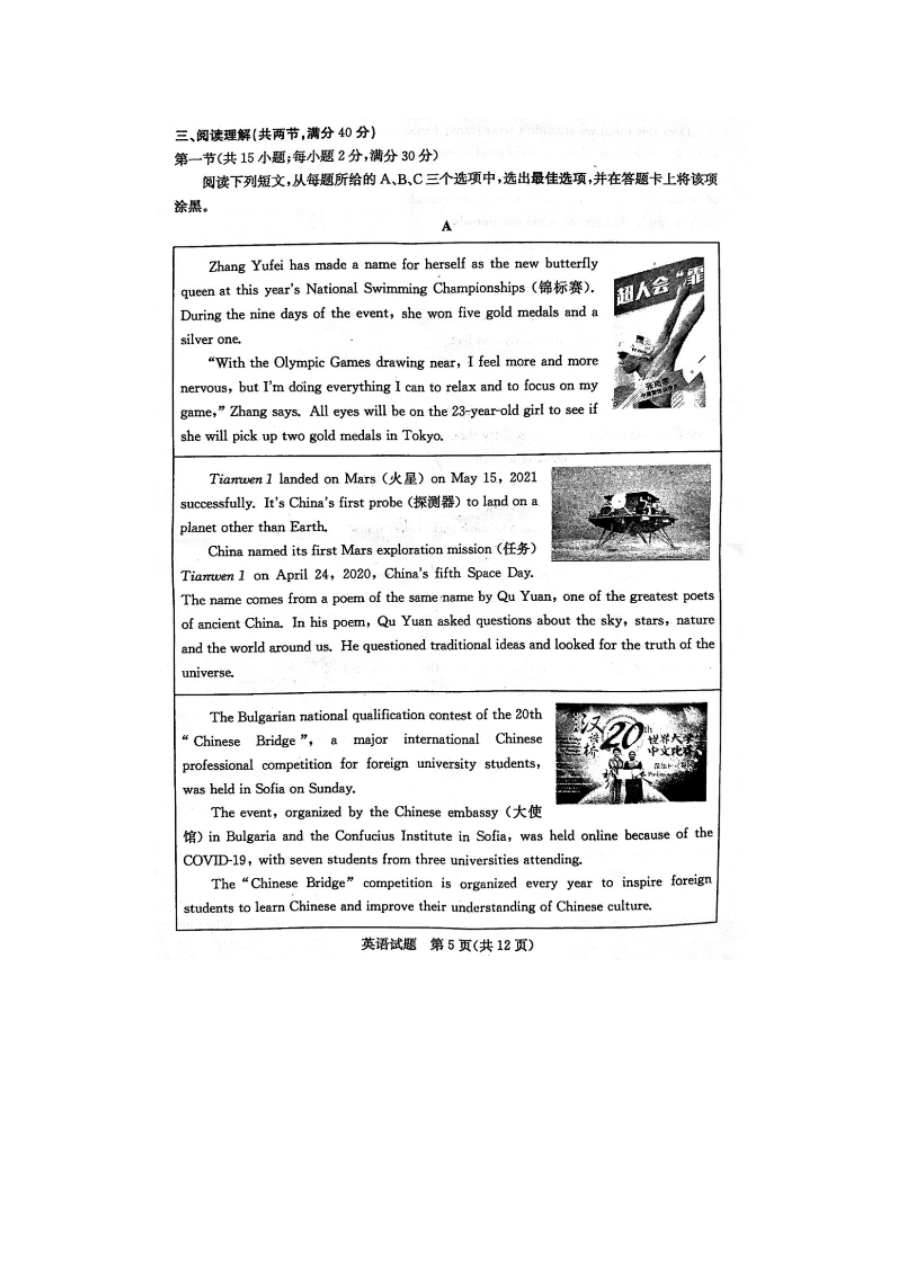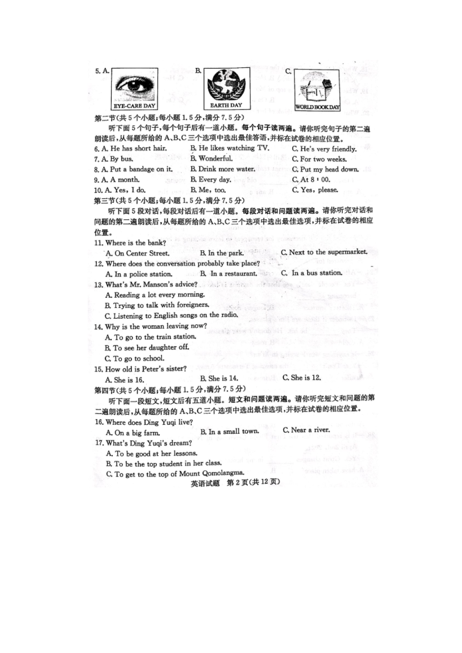 【文档预览】 无忧考网整理发布2021年山东省菏泽市中考英语真题(图片版),前五页预览如下: