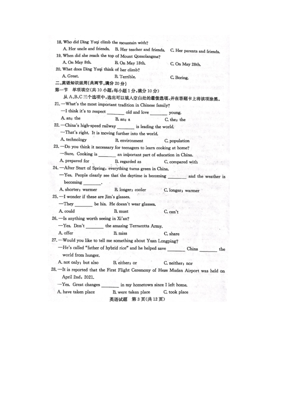 【文档名称】 2021年山东省菏泽市中考英语真题(图片版).doc