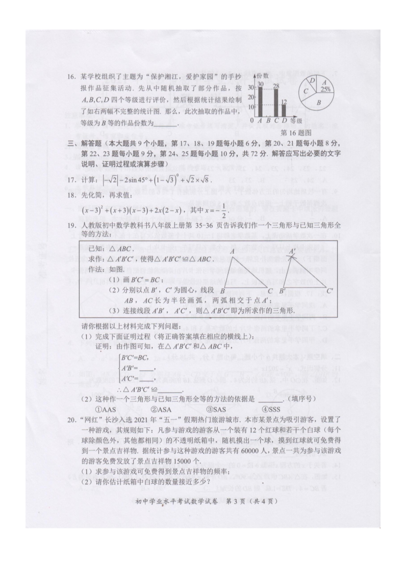 【文档名称】 2021年湖南长沙中考数学真题(图片版).doc
