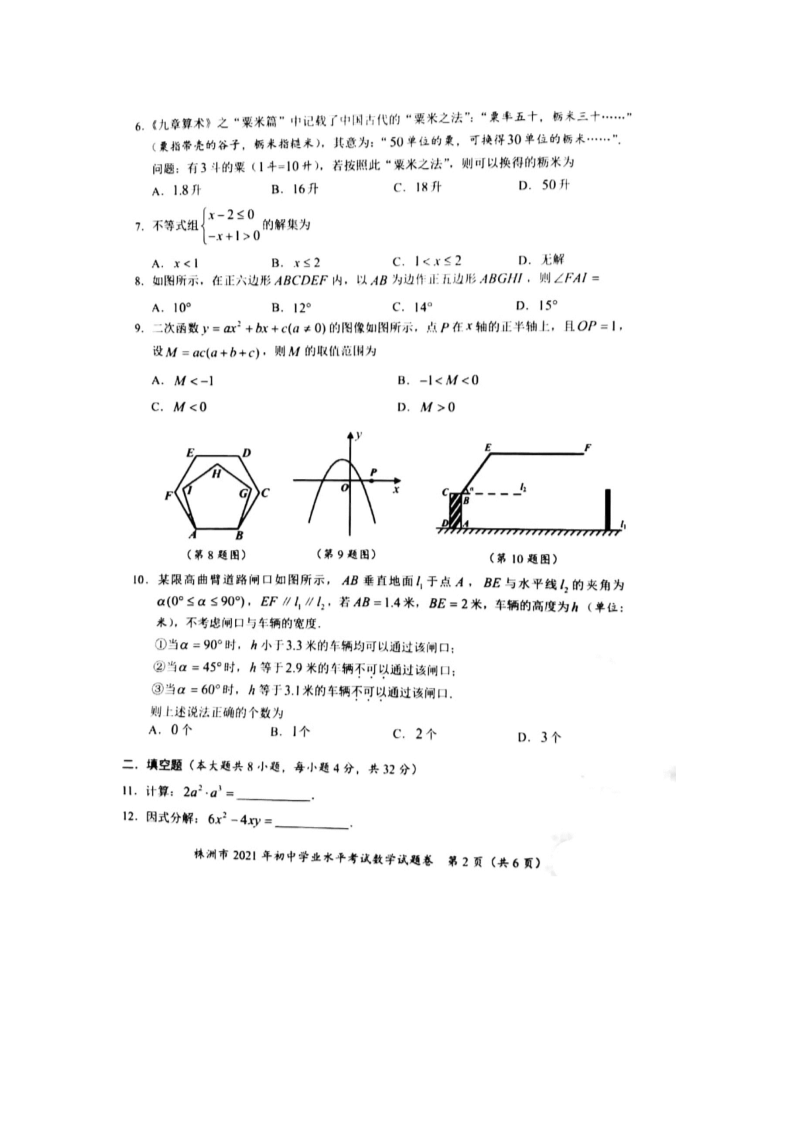 【文档名称】 2021年湖南株洲中考数学真题(图片版).doc