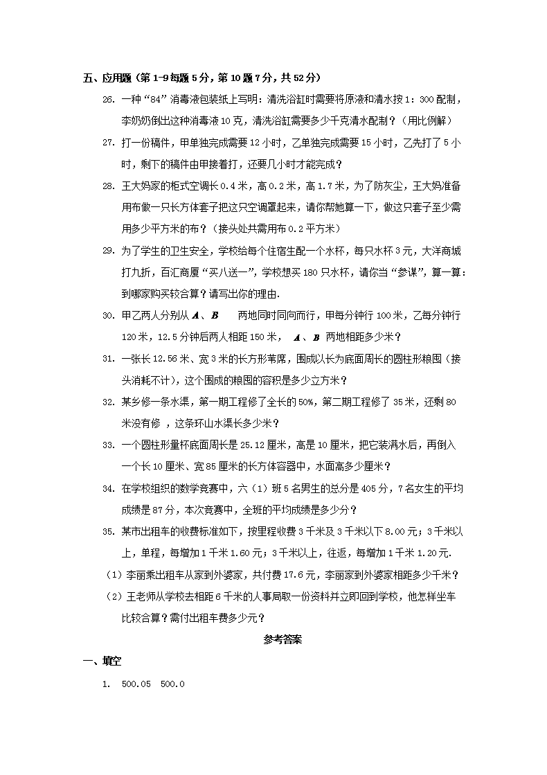 【文档名称】 2015年上海徐汇区小升初数学真题及答案(Word版).doc