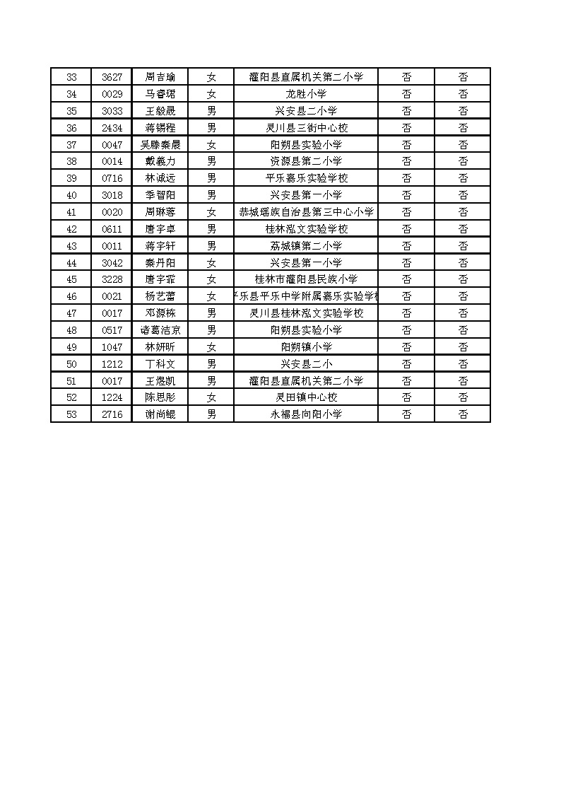 2021年广西桂林市区小升初师大附属外国语学校电脑随机派位名单(非城区)
