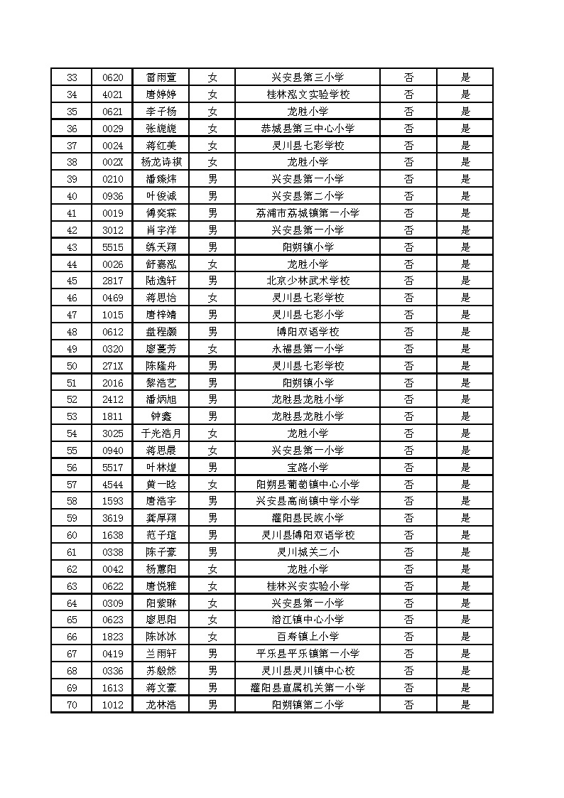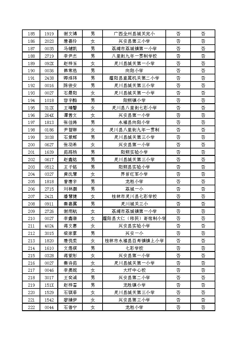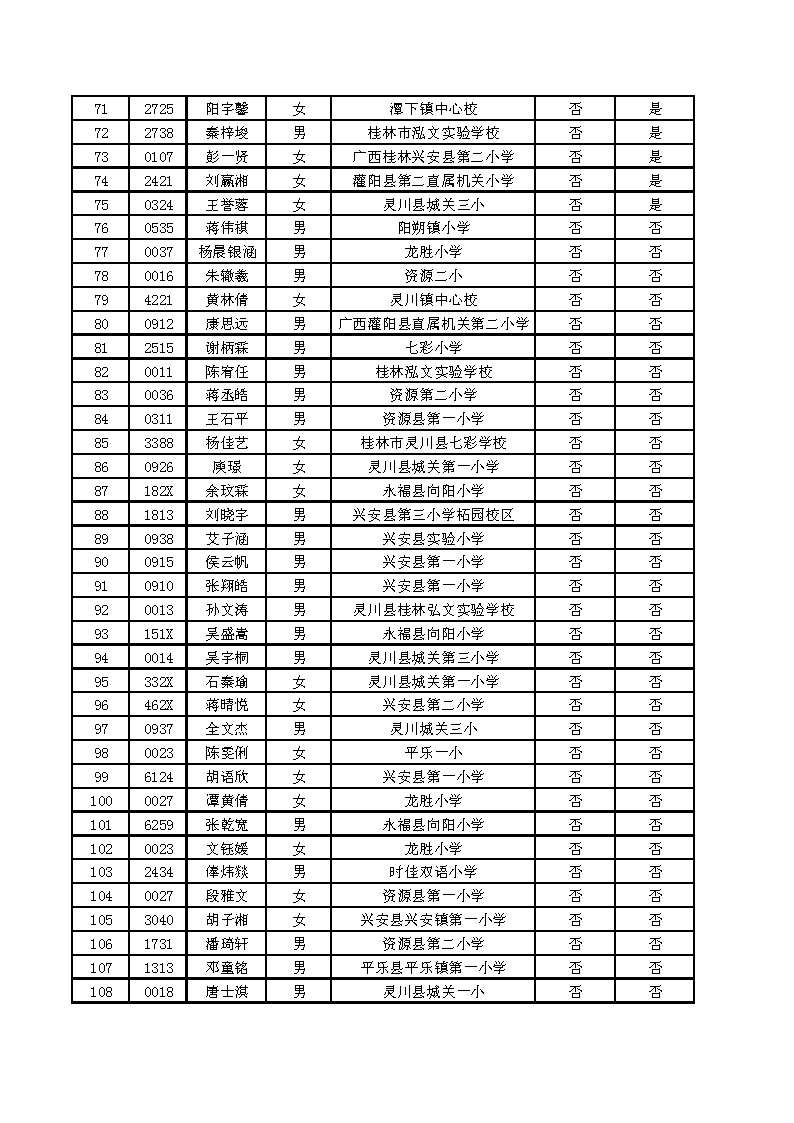 2021年广西桂林市区小升初奎光学校电脑随机派位名单(非城区)