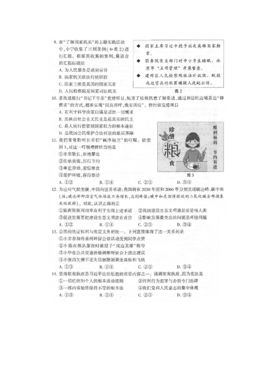 【文档名称】 2021年江苏省南京市中考政治真题(图片版).doc