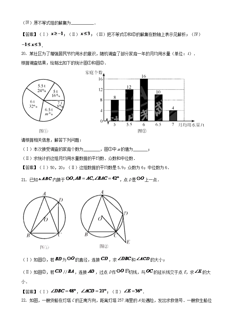 【文档名称】 2021年天津武清中考数学试题及答案(Word版).doc