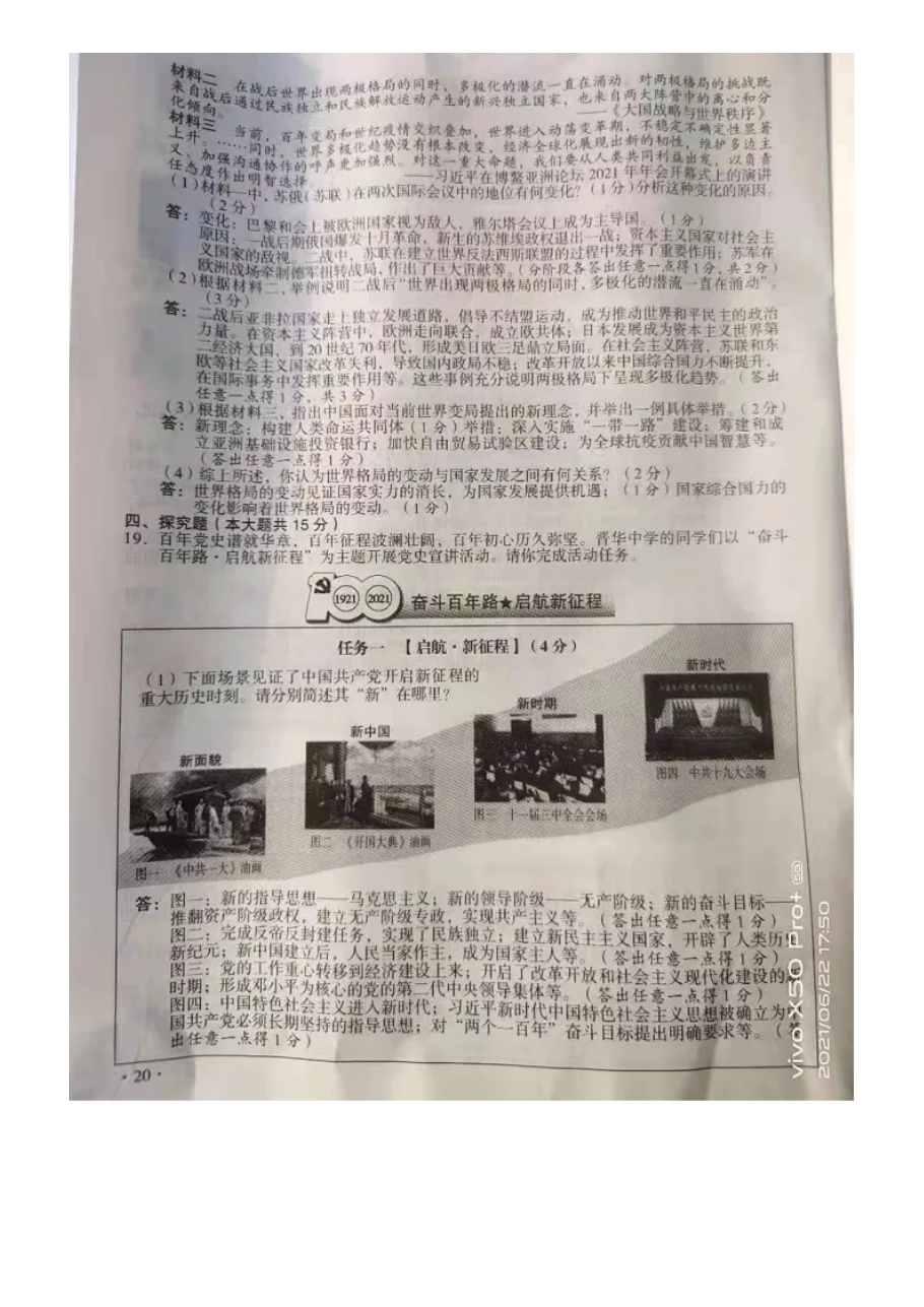 【文档名称】 2021年山西阳泉中考历史试题及答案(图片版).doc