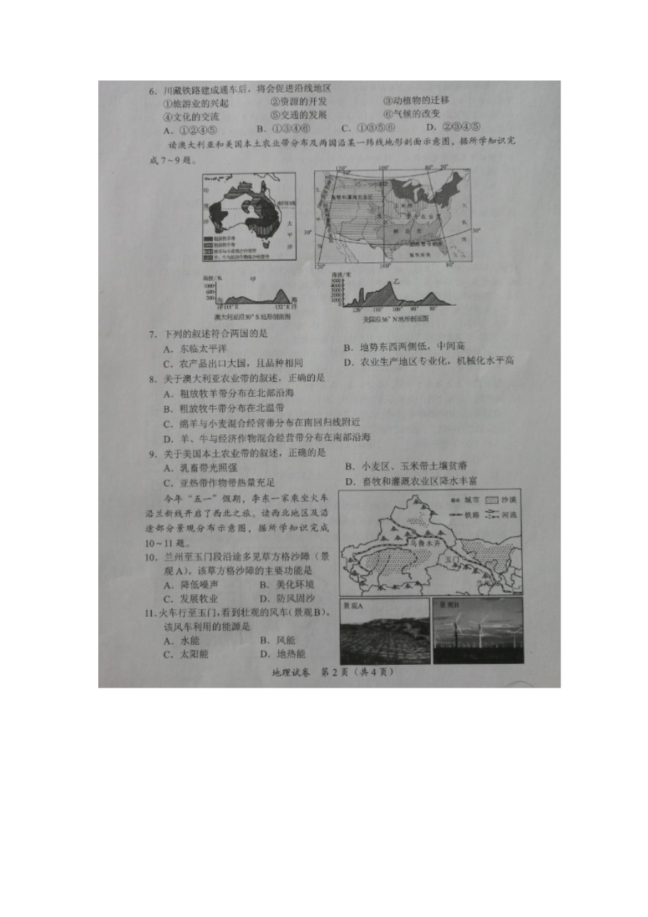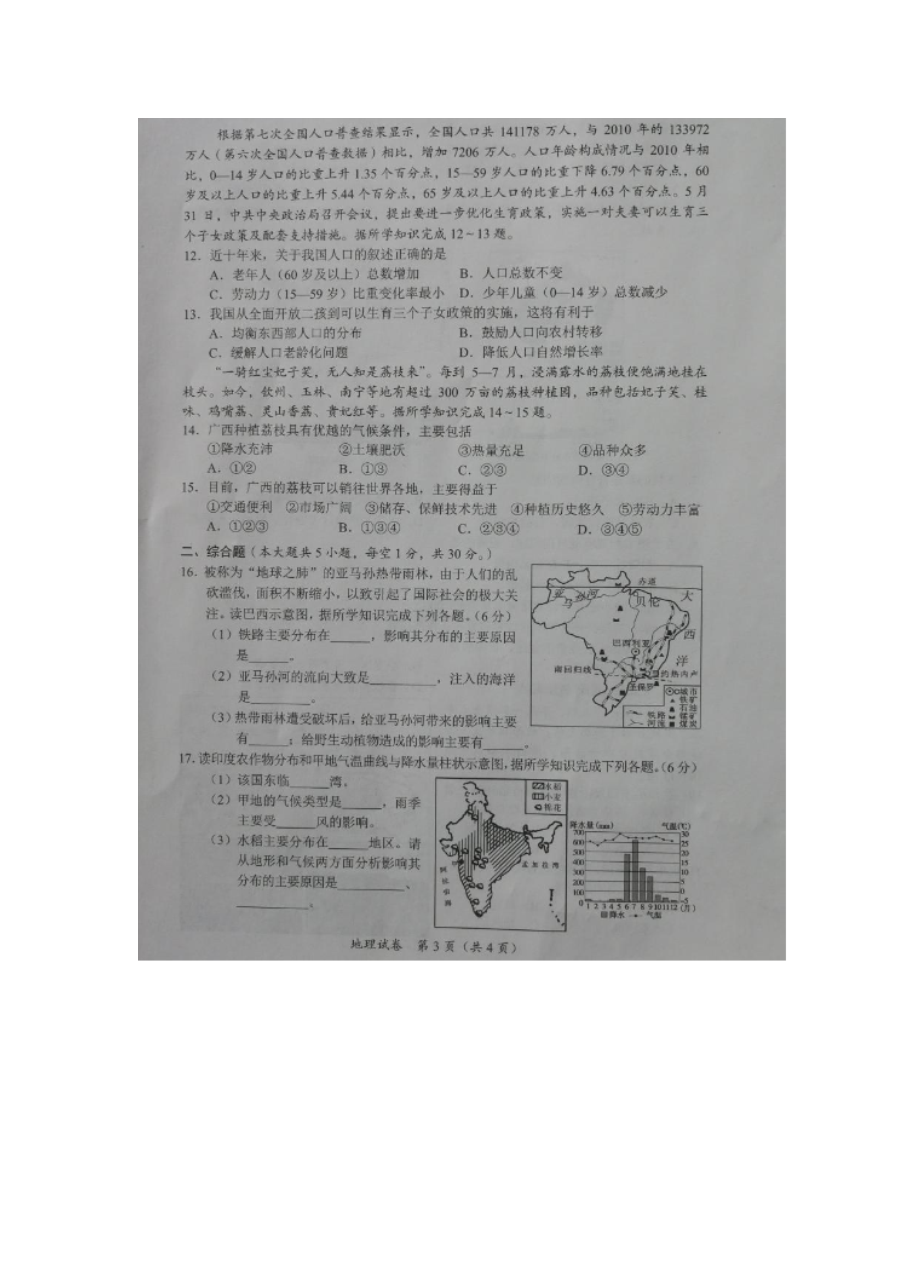 【文档预览】 无忧考网整理发布2021年广西钦州中考地理真题(图片版),前五页预览如下: