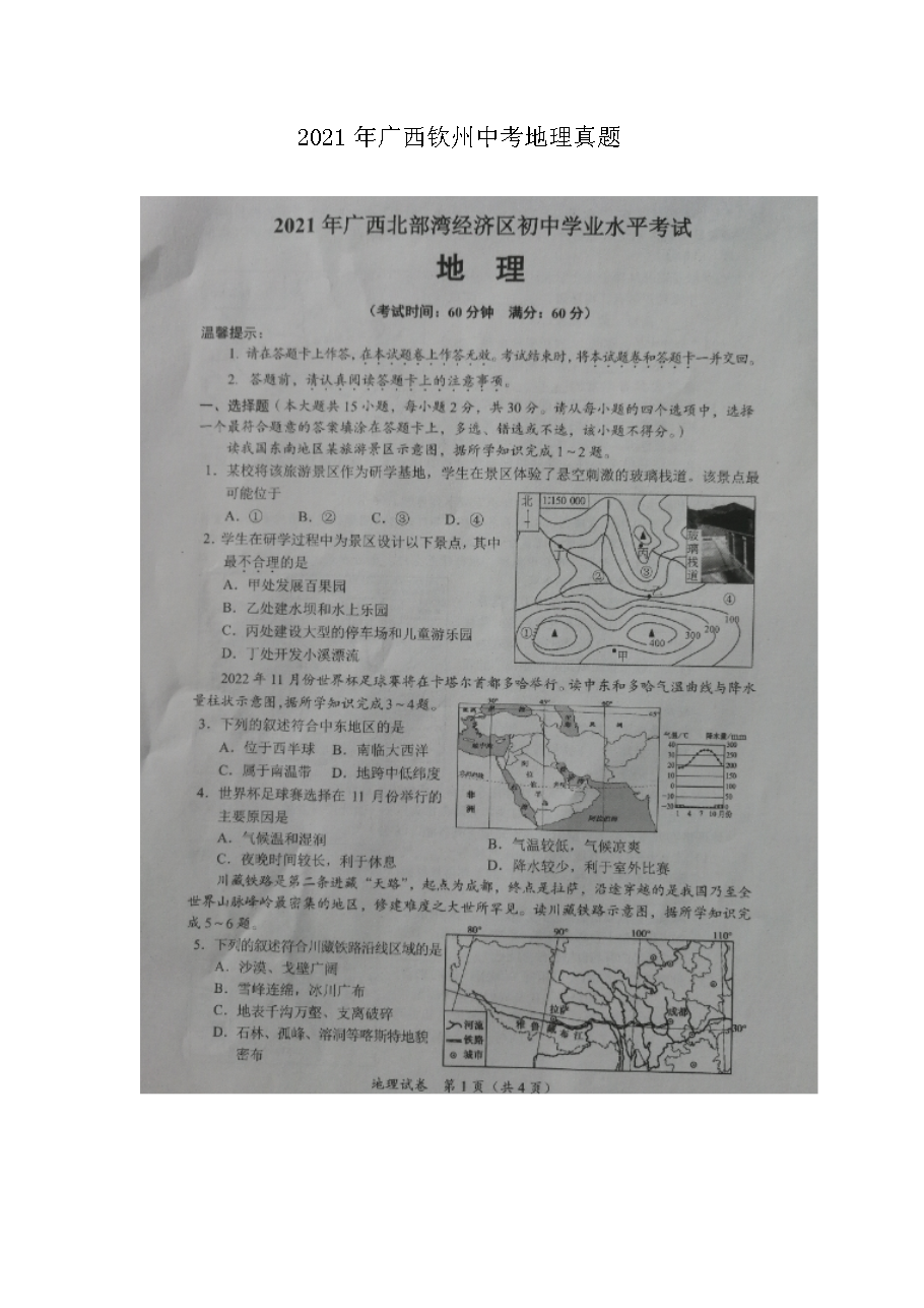 【文档名称】 2021年广西钦州中考地理真题(图片版).doc