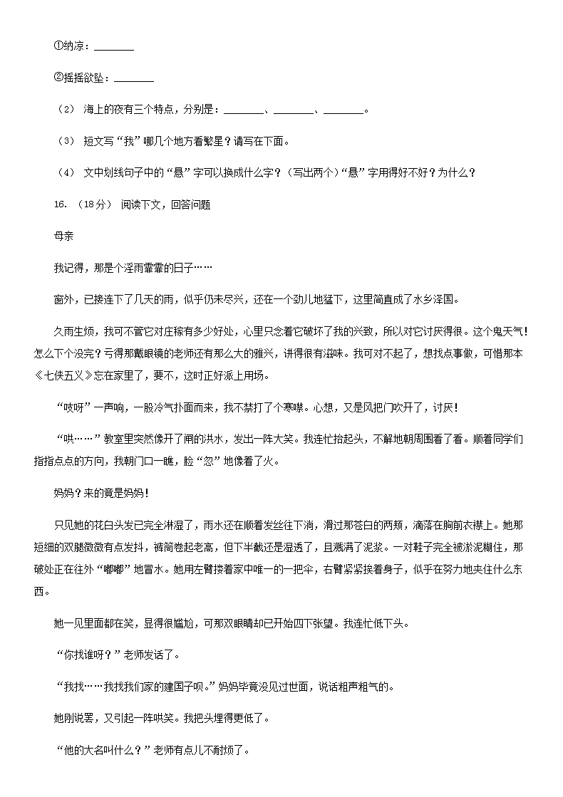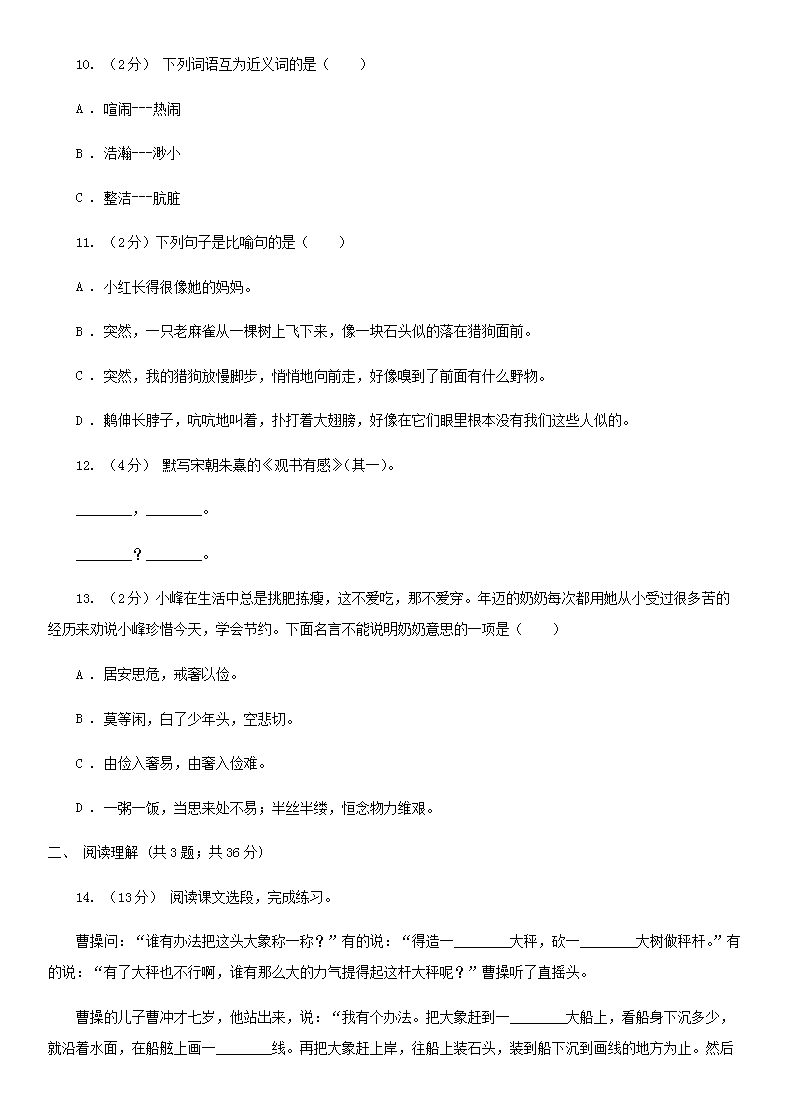 【文档名称】 2020年四川甘孜小升初语文真题及答案D卷(Word版).doc