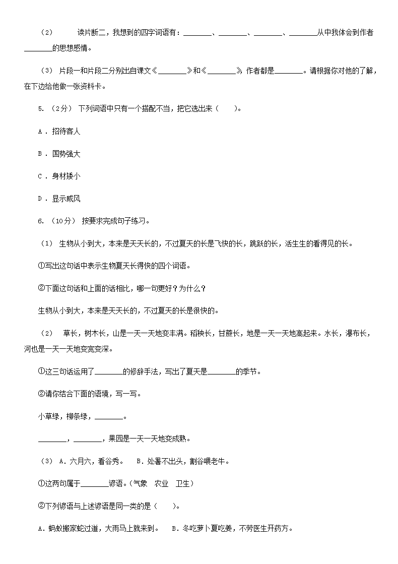【文档名称】 2020年四川甘孜小升初语文真题及答案II卷(Word版).doc