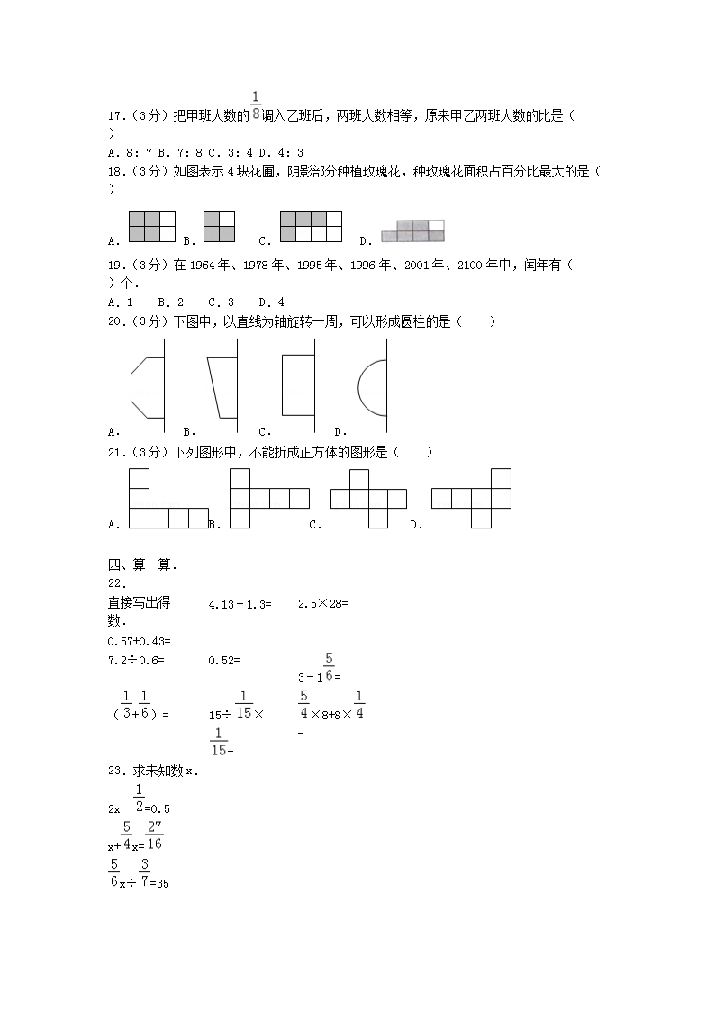 【文档名称】 2018年山东德州五中小升初数学真题及答案(Word版).doc