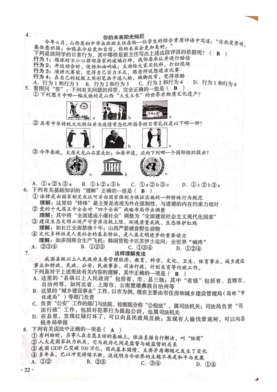 【文档预览】 无忧考网整理发布2021年山西临汾中考政治试题及答案(图片版),前五页预览如下: