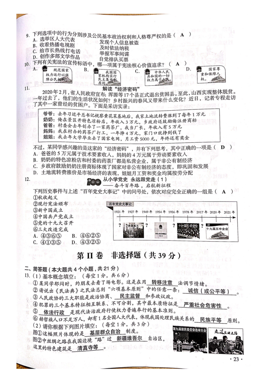 【文档名称】 2021年山西临汾中考政治试题及答案(图片版).doc