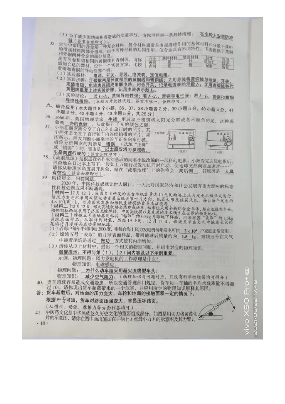 【文档名称】 2021年山西太原中考物理试题及答案(图片版).doc