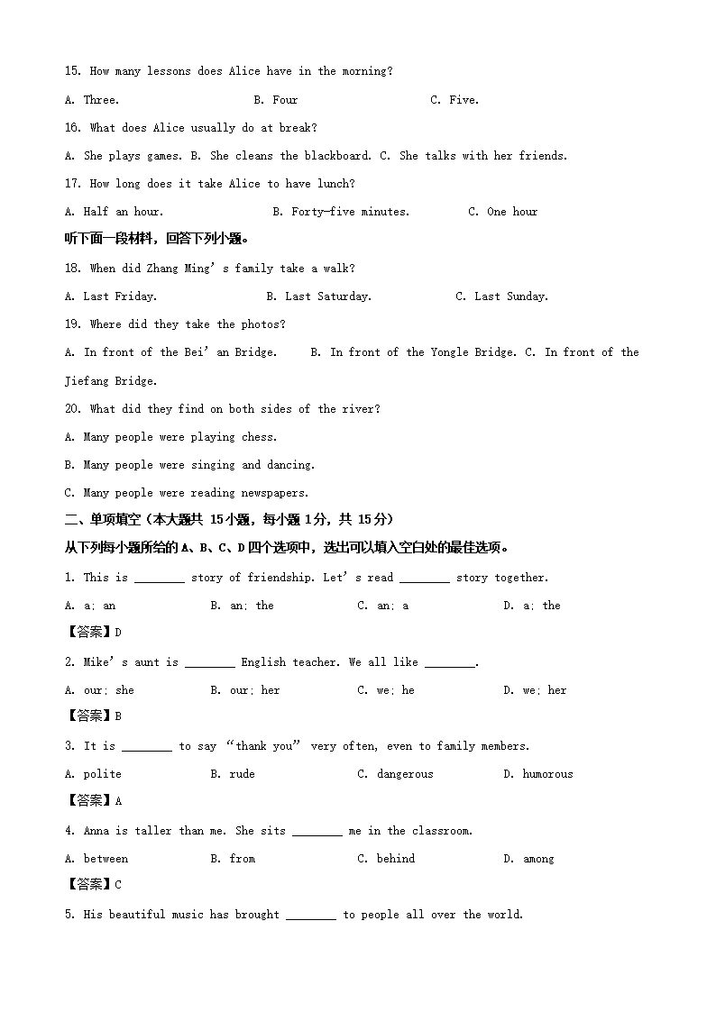 【文档名称】 2021年天津红桥中考英语试题及答案(Word版).doc
