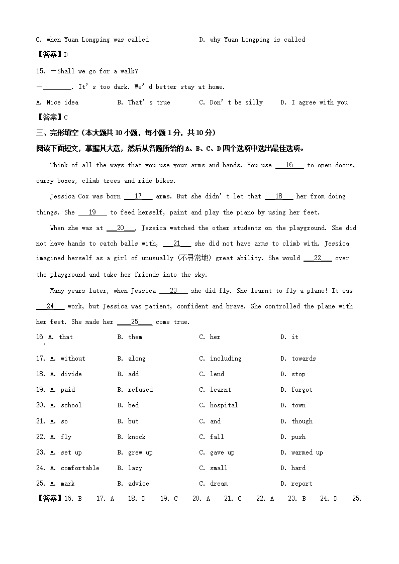 【文档名称】 2021年天津和平中考英语试题及答案(Word版).doc