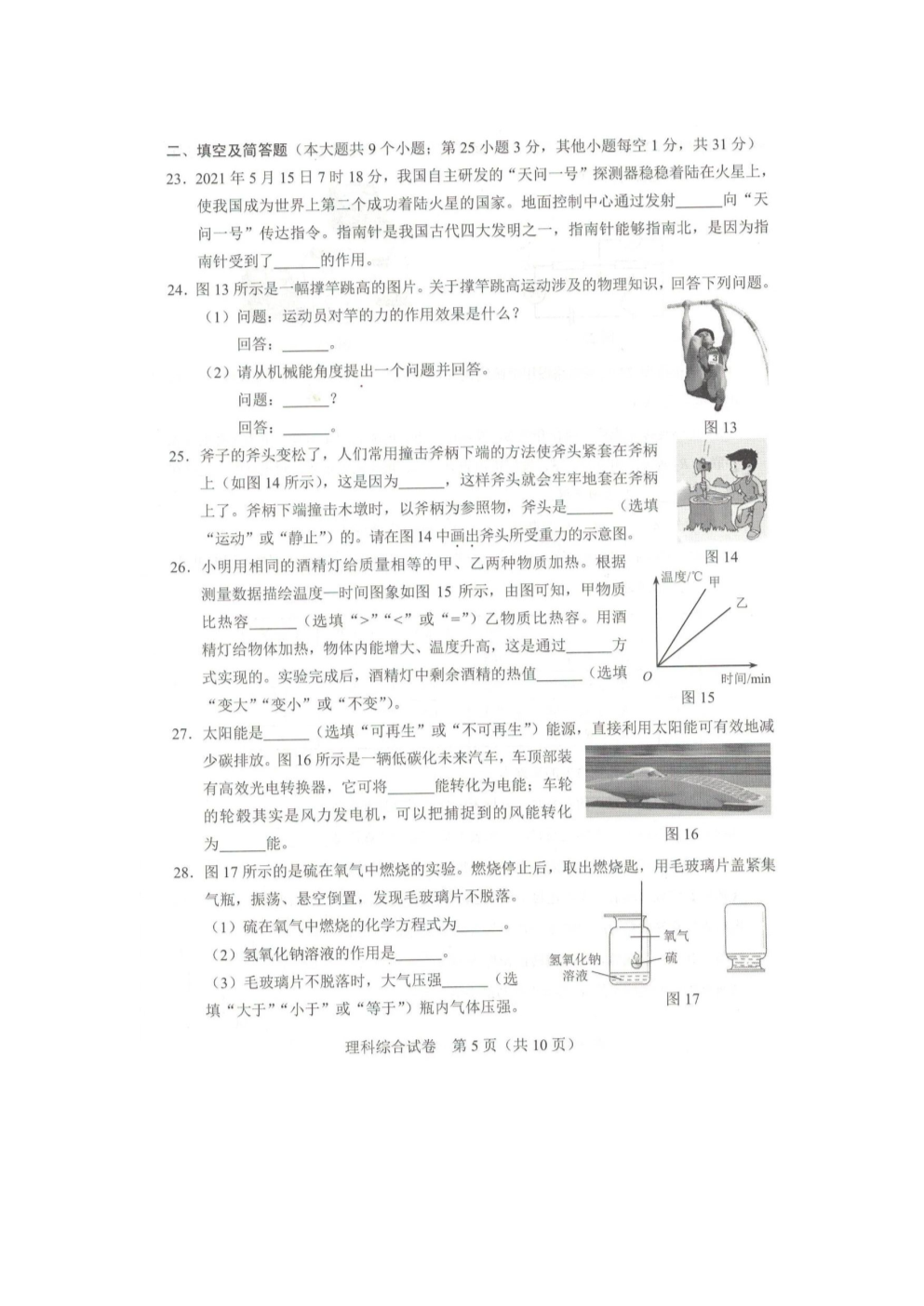 【文档名称】 2021年河北保定中考理科综合真题及答案(图片版).doc