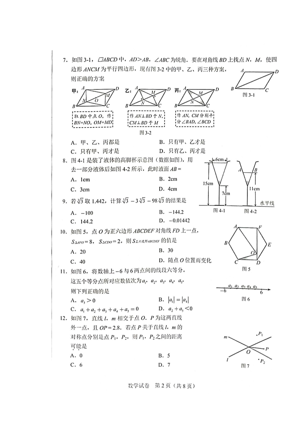 【文档名称】 2021年河北沧州中考数学真题及答案(图片版).doc