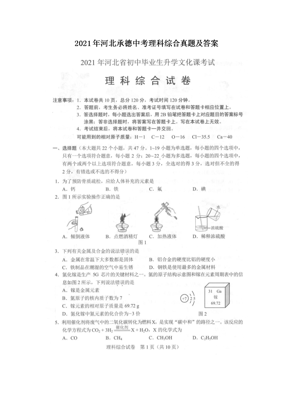 【文档预览】 无忧考网整理发布2021年河北承德中考理科综合真题及答案(图片版),前五页预览如下: