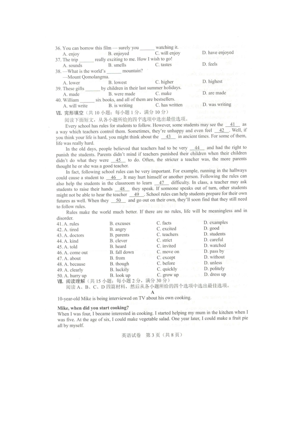 【文档预览】 无忧考网整理发布2021年河北邢台中考英语真题及答案(图片版),前五页预览如下:
