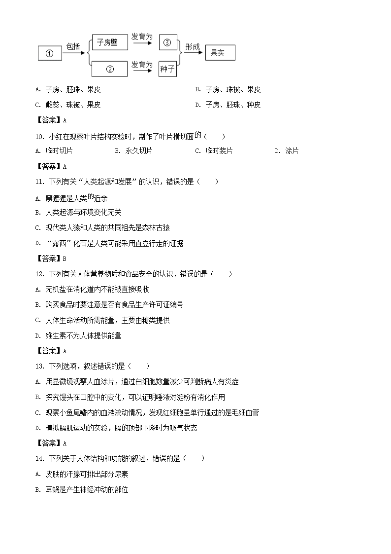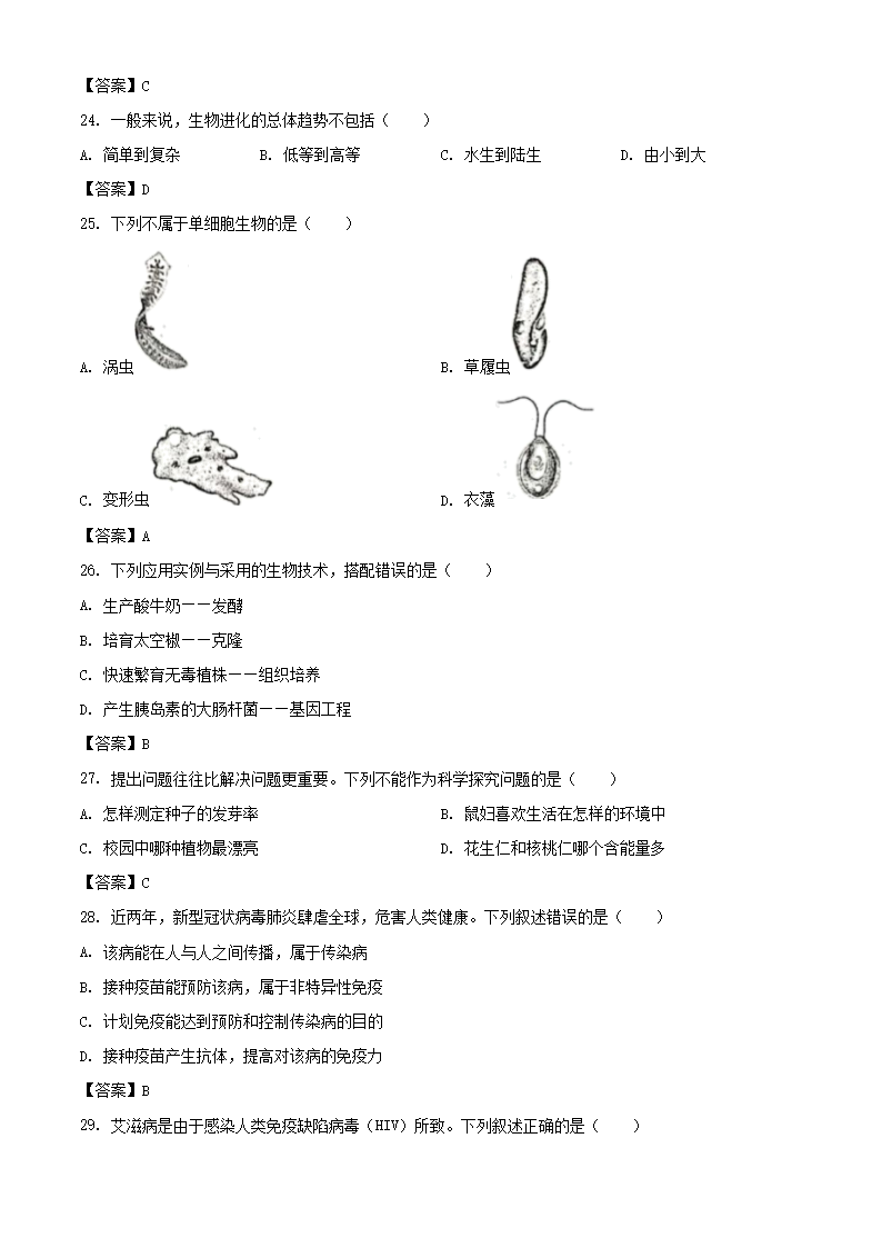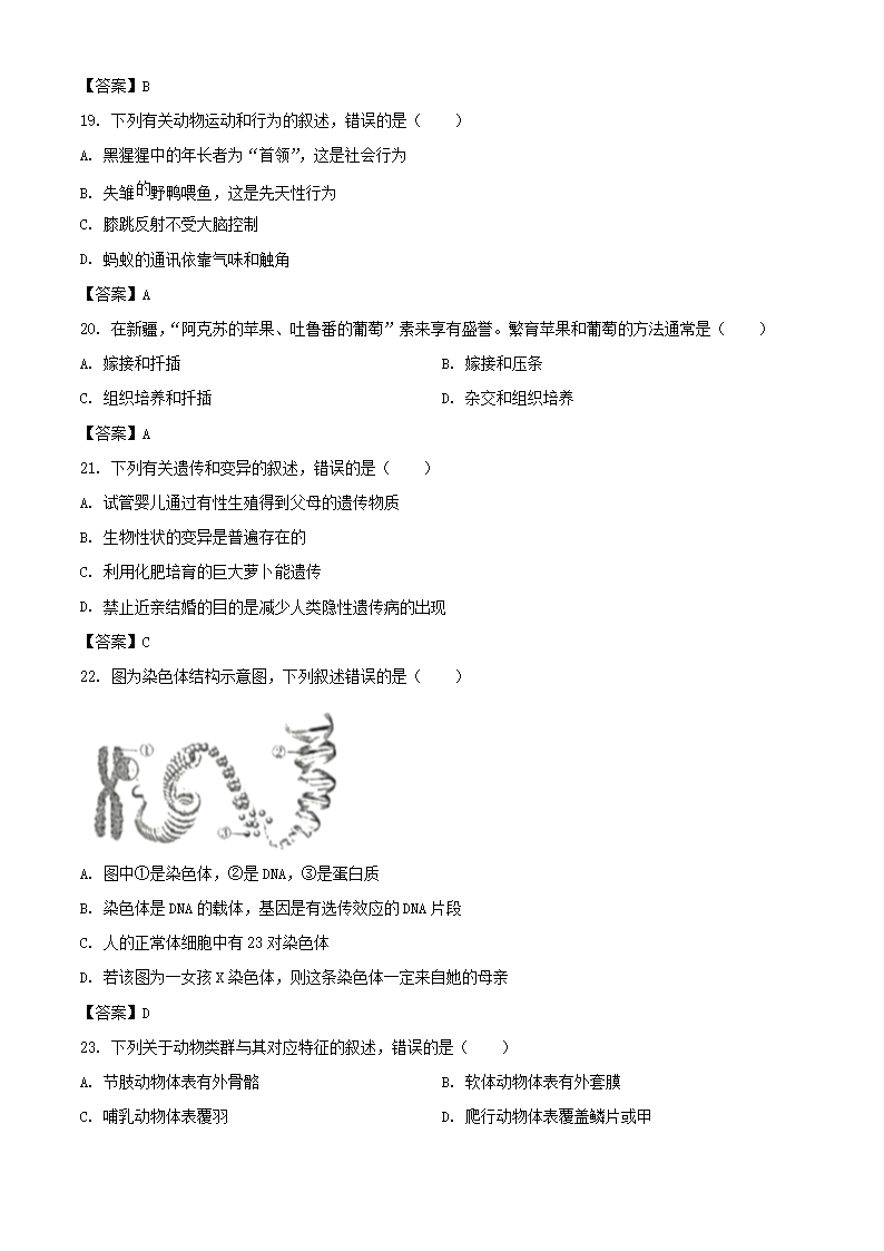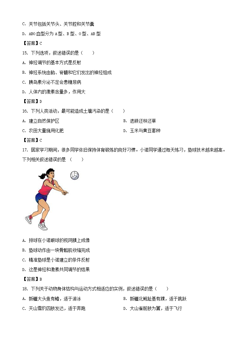 【文档名称】 2021年新疆中考生物试题及答案(Word版).doc