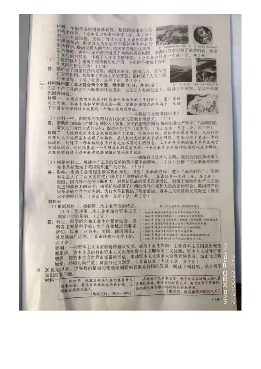【文档预览】 无忧考网整理发布2021年山西长治中考历史试题及答案(图片版),前五页预览如下: