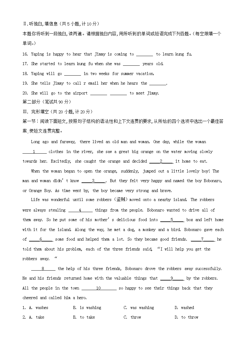 【文档预览】 无忧考网整理发布2021年陕西延安中考英语真题及答案(Word版),前五页预览如下:
