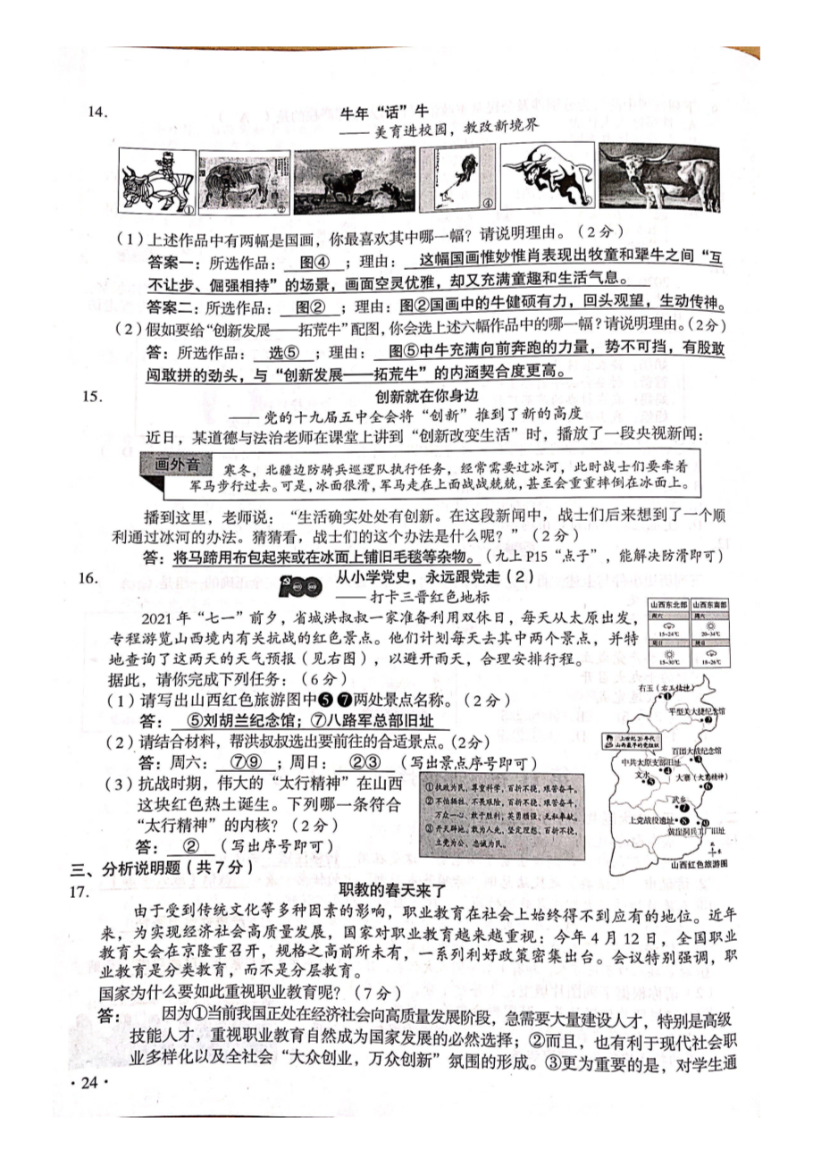 【文档名称】 2021年山西忻州中考政治试题及答案(图片版).doc