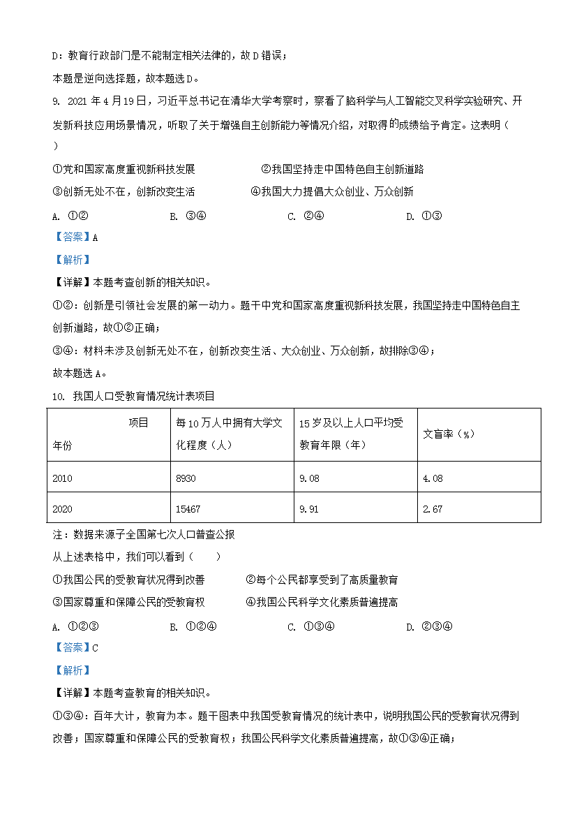【文档名称】 2021年陕西安康中考政治真题及答案(Word版).doc