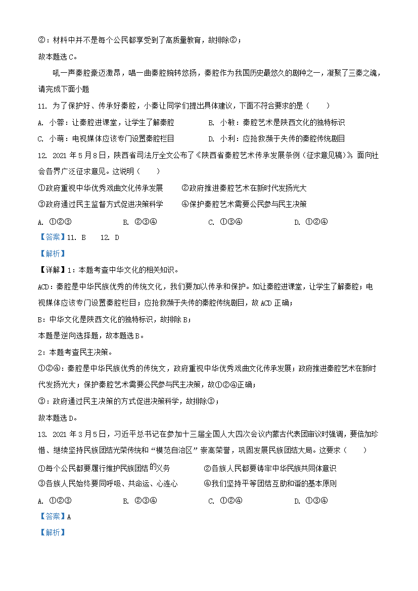 【文档名称】 2021年陕西渭南中考政治真题及答案(Word版).doc