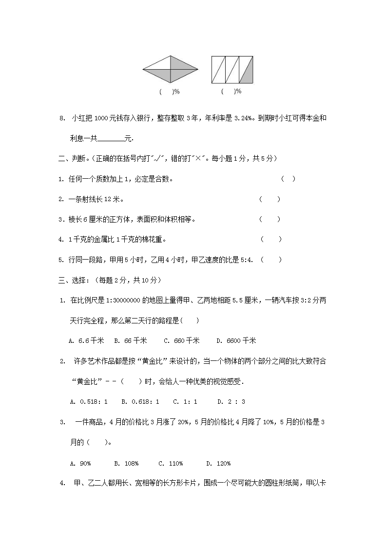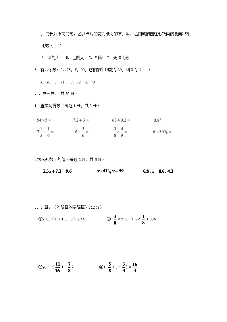 【文档名称】 2019年四川凉山小升初数学真题及答案(Word版).doc