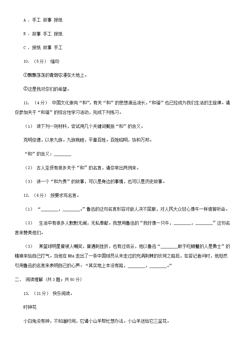 【文档名称】 2020年四川攀枝花小升初语文真题及答案A卷(Word版).doc