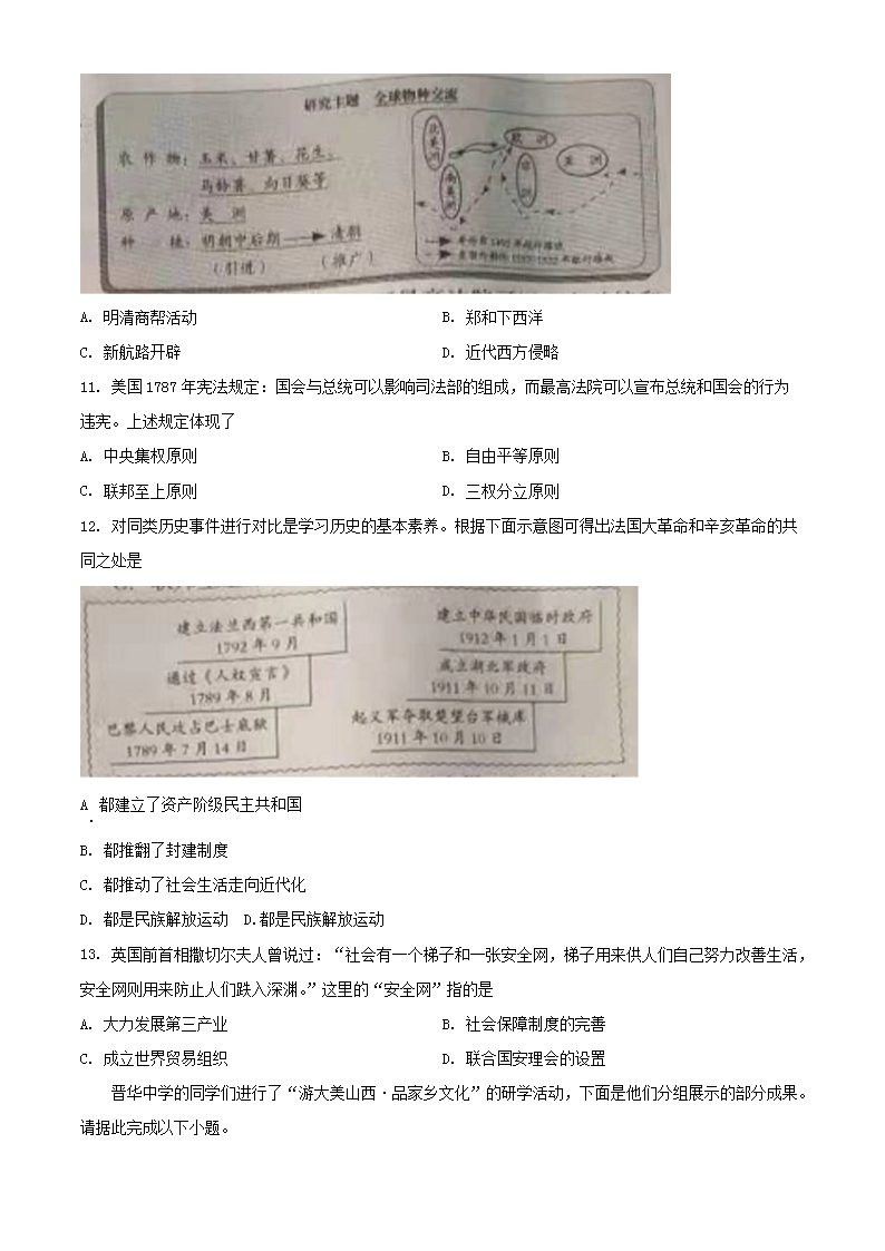 【文档名称】 2021年山西吕梁中考历史真题及答案(Word版).doc