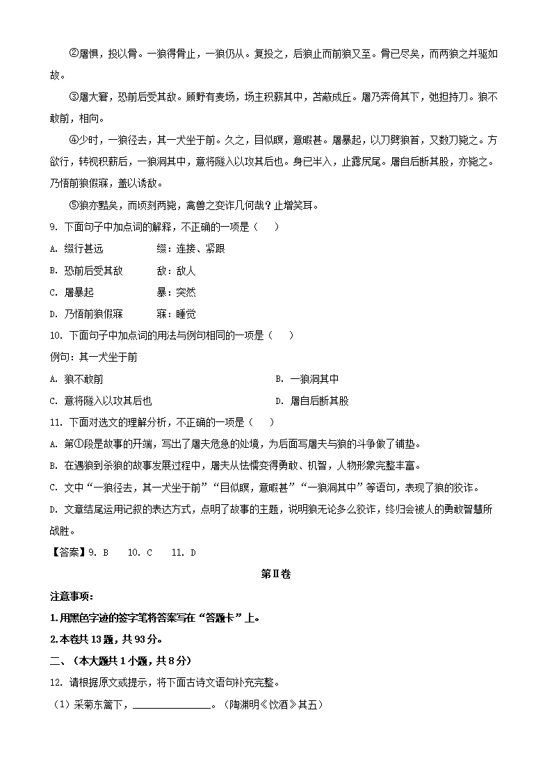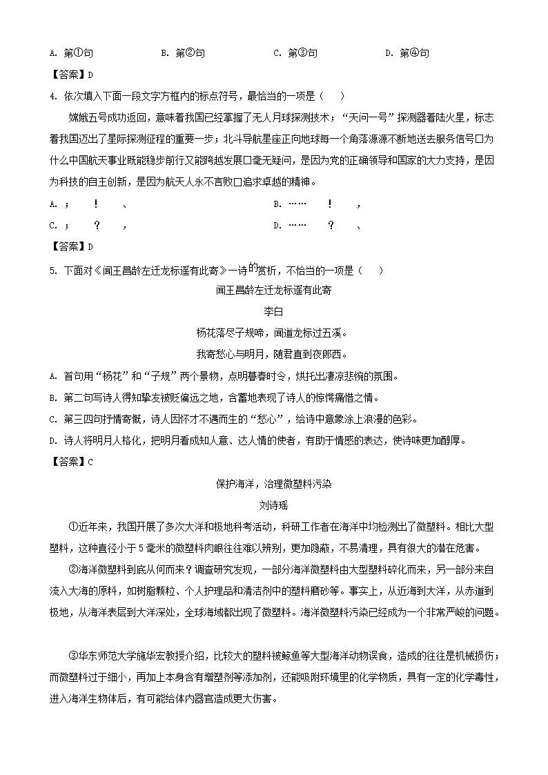 【文档名称】 2021年天津塘沽中考语文试题及答案(Word版).doc