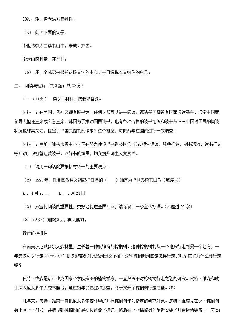 【文档名称】 2020年四川广元小升初语文真题及答案D卷(Word版).doc