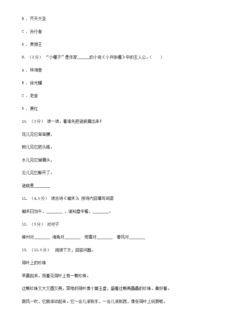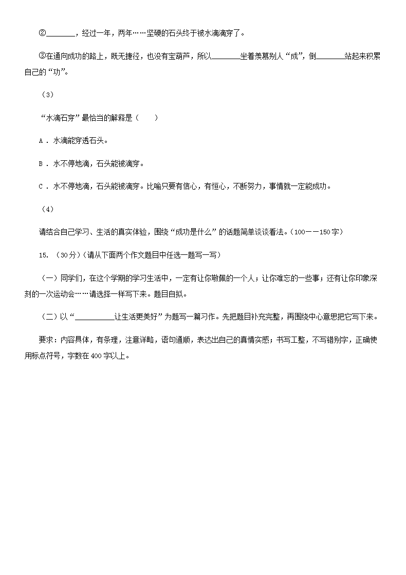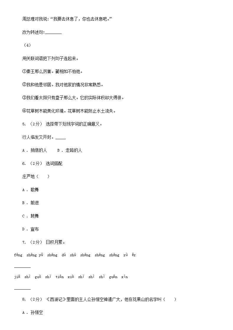 【文档名称】 2020年四川遂宁小升初语文真题及答案A卷(Word版).doc
