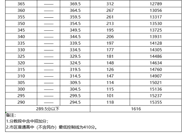 刚刚,2021年无锡市区中考分数段公布(见下表)